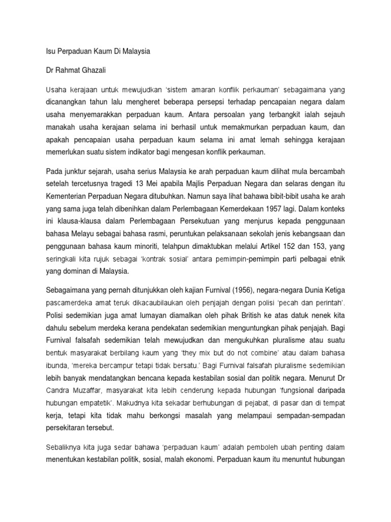 Doc Isu Perpaduan Kaum Di Malaysia Sufi Ryder Academia Edu
