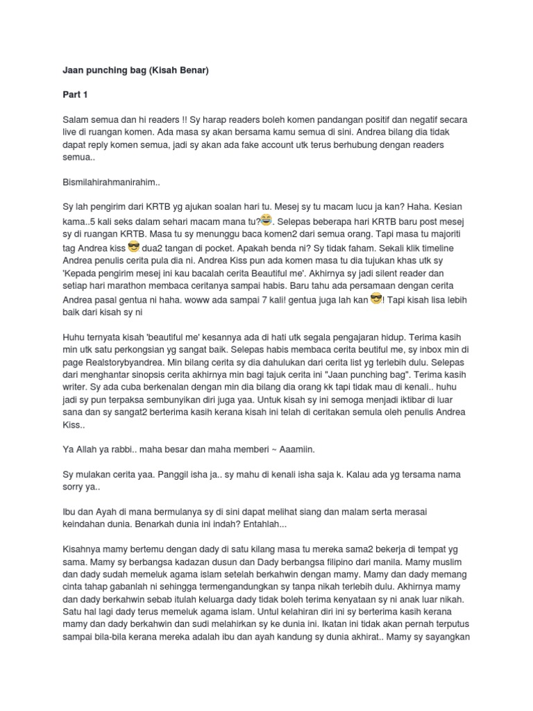 Jaan Punching Bag Cerpen Viral Real Story By Andrea Kiss Yang Berunsur Lucah Jangan Terjebak Menularkannya Koleksi Resepi Face Mask Kain Cotton Tips Keibubapaan