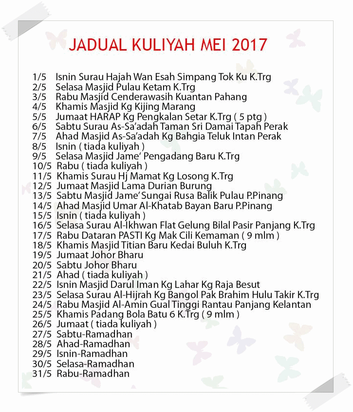 Jadual Kuliah Ustaz Azhar Idrus Uai September 2017