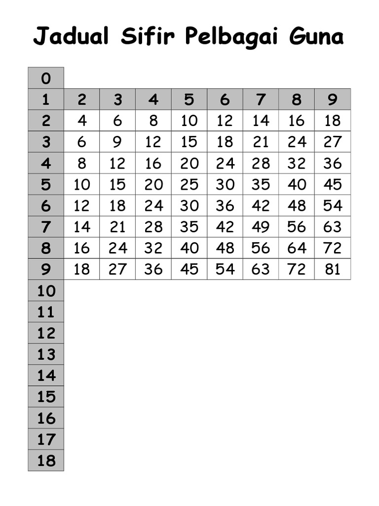 Jadual Sifir Pelbagai Guna Bijak Sifir