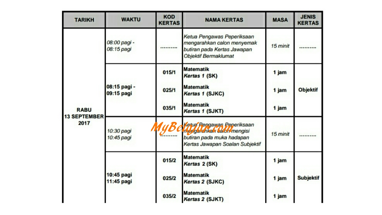 Download Jadual Waktu Upsr 2017 Mykssr Com