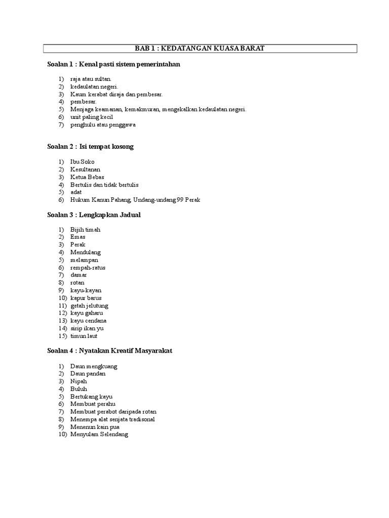 Jawapan Buku Latihan Sejarah Tingkatan 1
