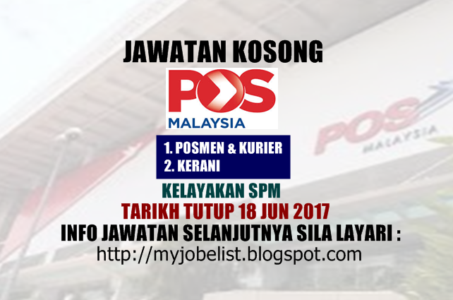 Pos Malaysia 18 Jun 2017 Jawatan Kosong 2020