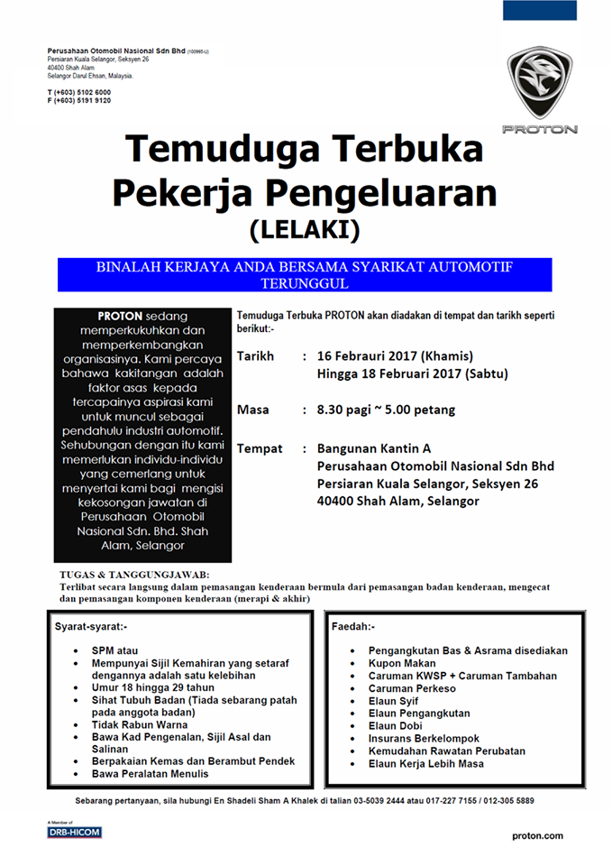 Temuduga Terbuka Perusahaan Otomobil Nasional Sdn Bhd Proton Appjawatan Malaysia