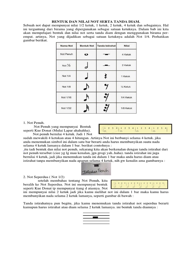 Bentuk Dan Nilai Not Serta Tanda Diam