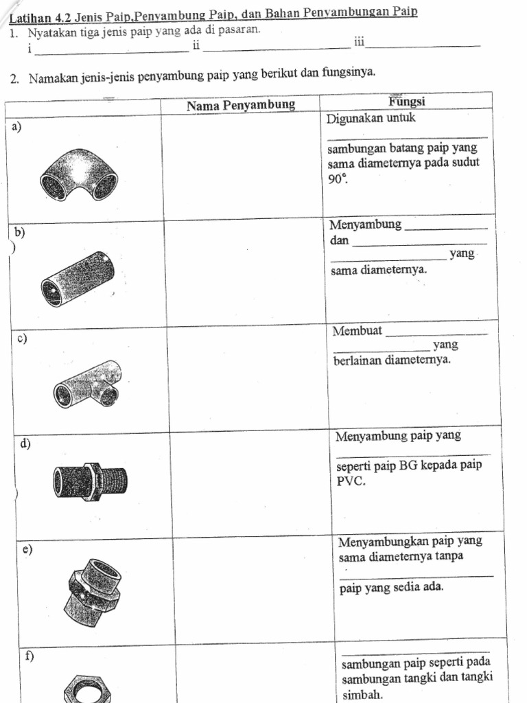 Bab 4 Kerja Paip Jenis Paip Penyambung Paip Dan Bahan Pemasangan Paip Khb Tingkatan 1