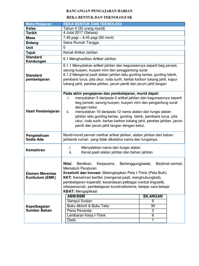 Mata Pelajaran Reka Bentuk Dan Teknologi