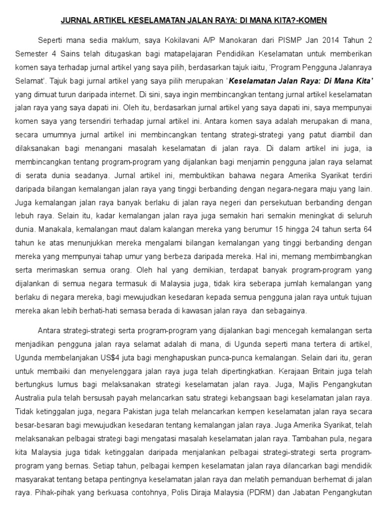Jurnal Artikel Keselamatan Jalan Raya Pke