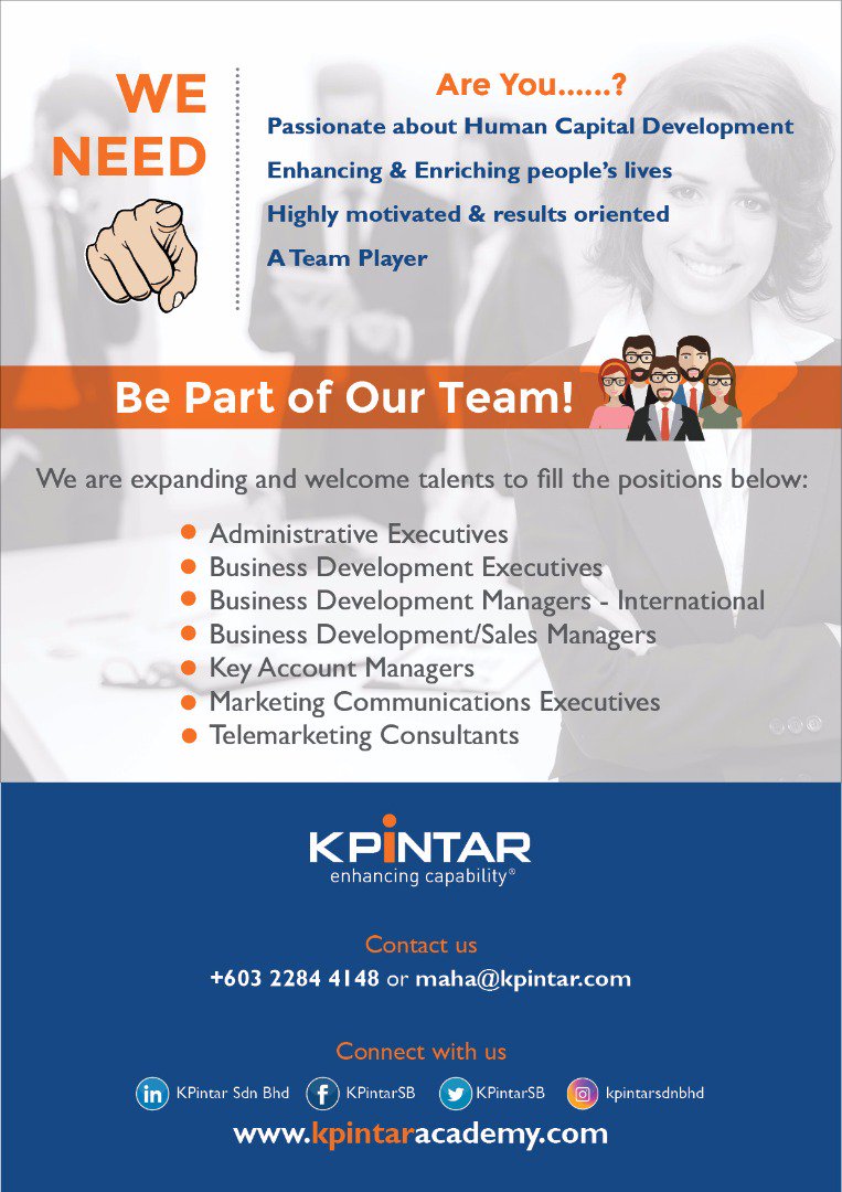 K Pintar Sdn Bhd Pa Twitter We Are Expanding And Seeking Talents With High Aspiration To Join Our Success Team In The Following Positions As Listed In The Advertisement Below For More Information