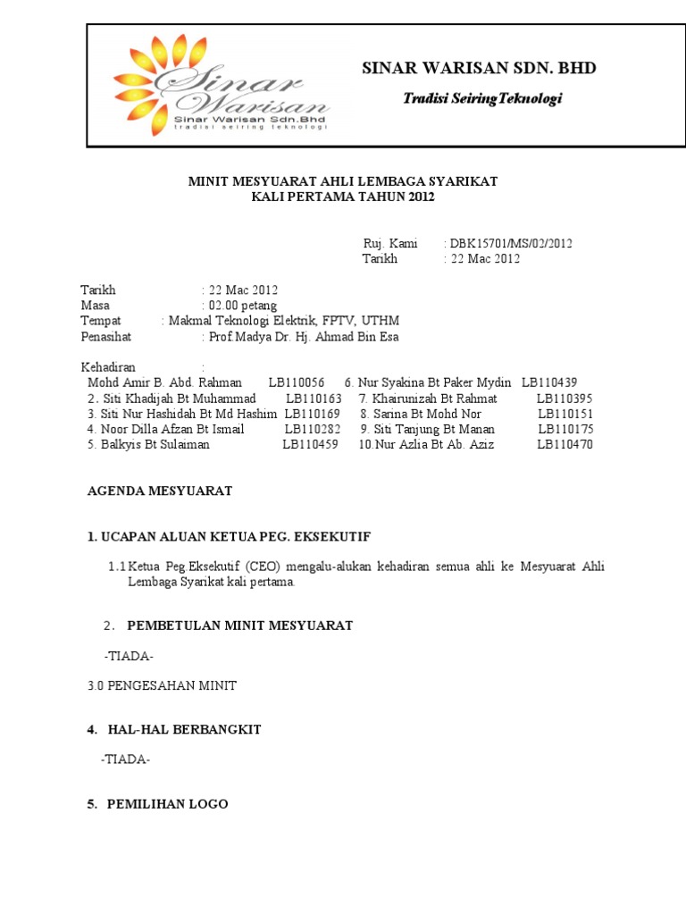 Doc Contoh Format Minit Mesyuarat Wawa Wawa Academia Edu
