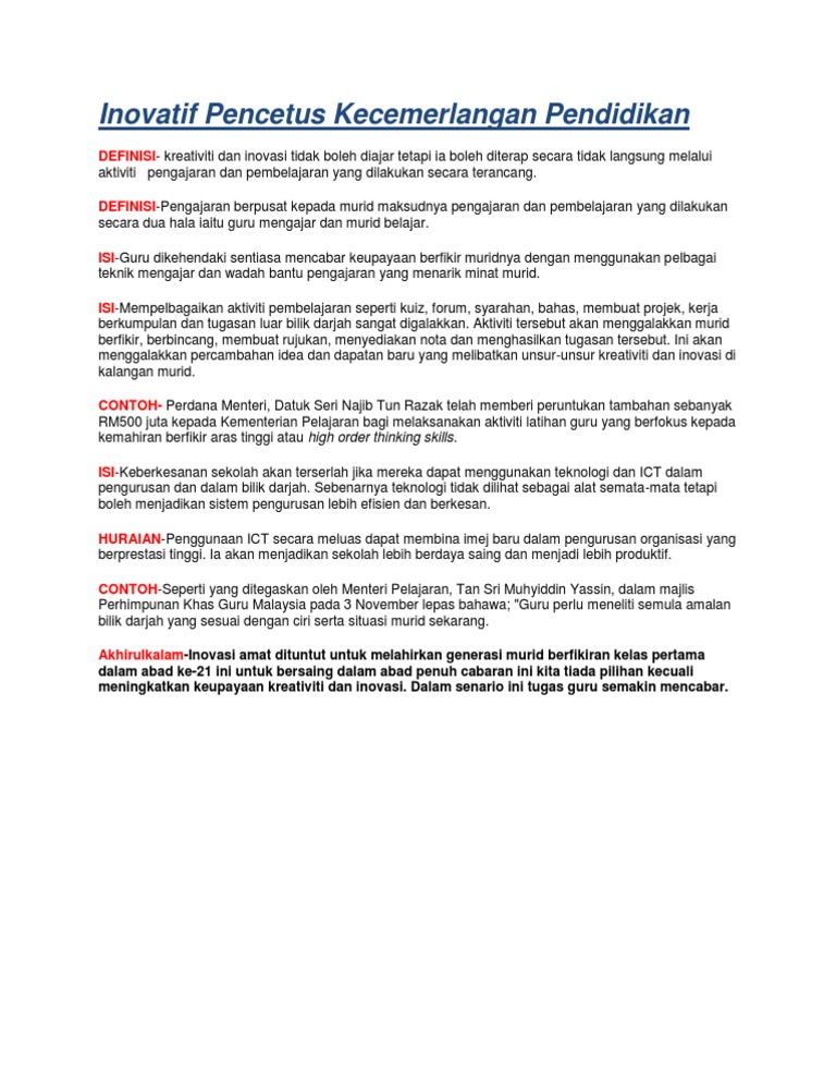 Inovatif Pencetus Kecemerlangan Pendidikan Docx