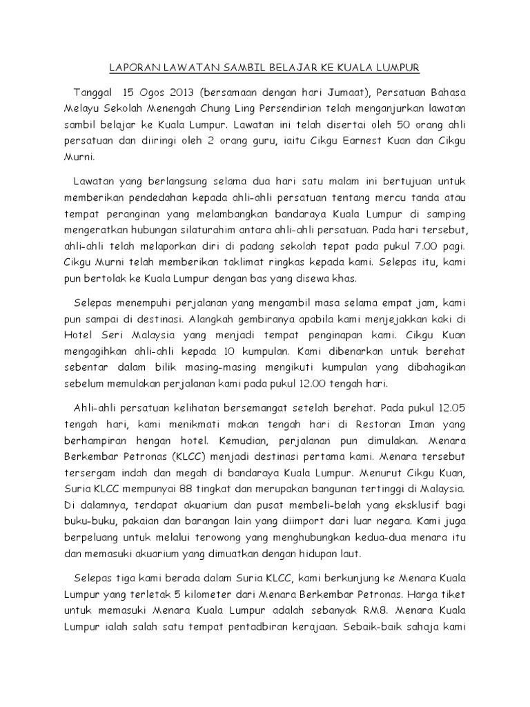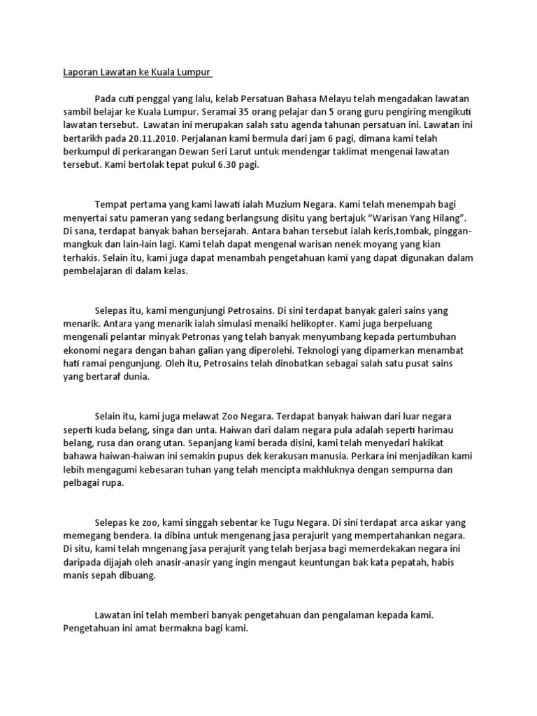 Karangan Laporan Lawatan Sambil Belajar Ke Kuala Lumpur Karangan Contoh Cikgugoh