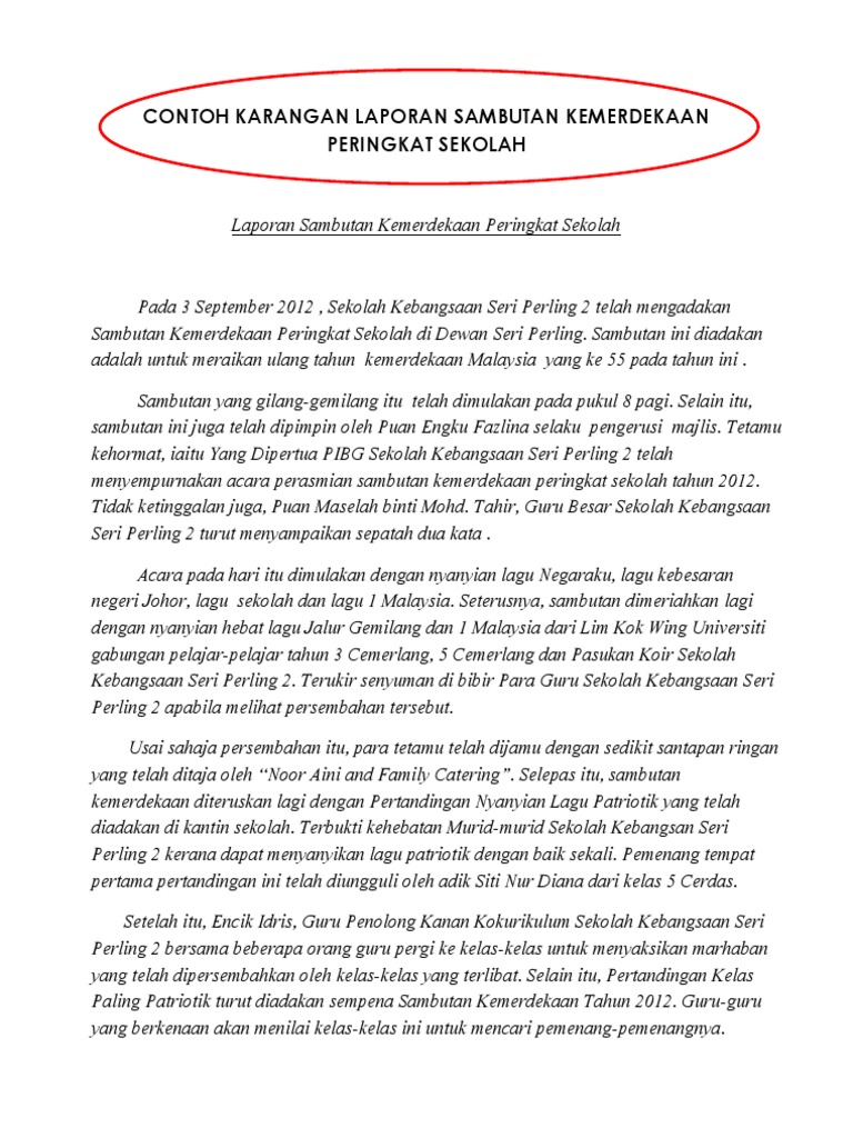 Contoh Karangan Laporan Sambutan Kemerdekaan Peringkat Sekolah