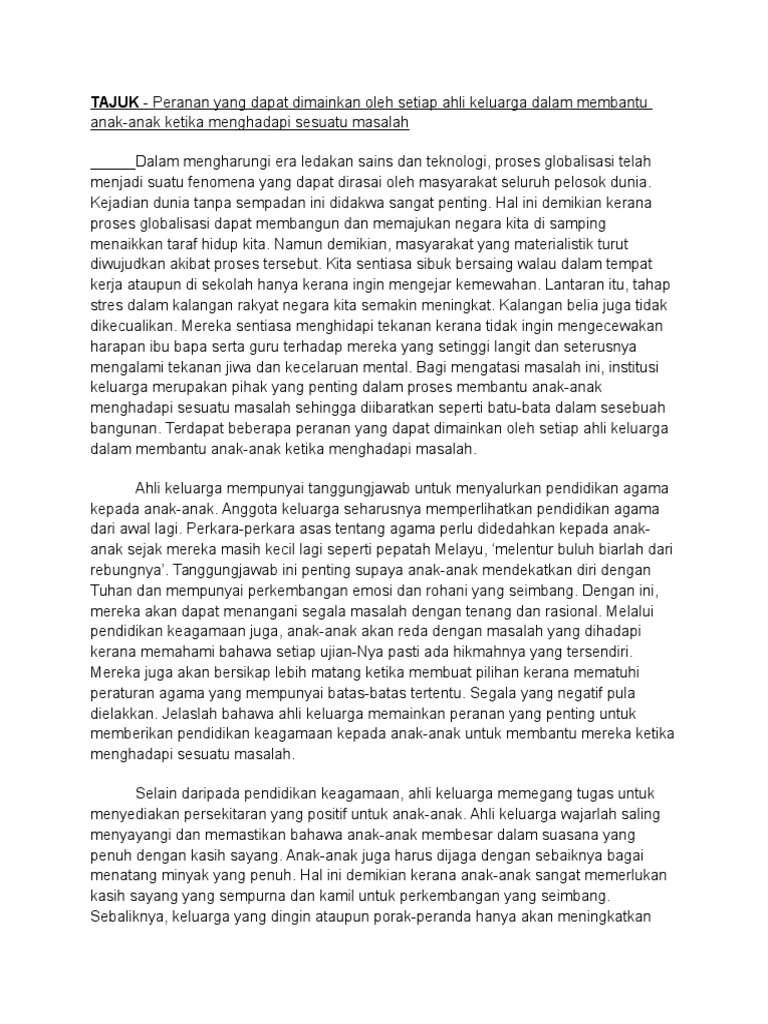 Karangan Peranan Ahli Keluarga Membantu Anak Menghadapi Masalah