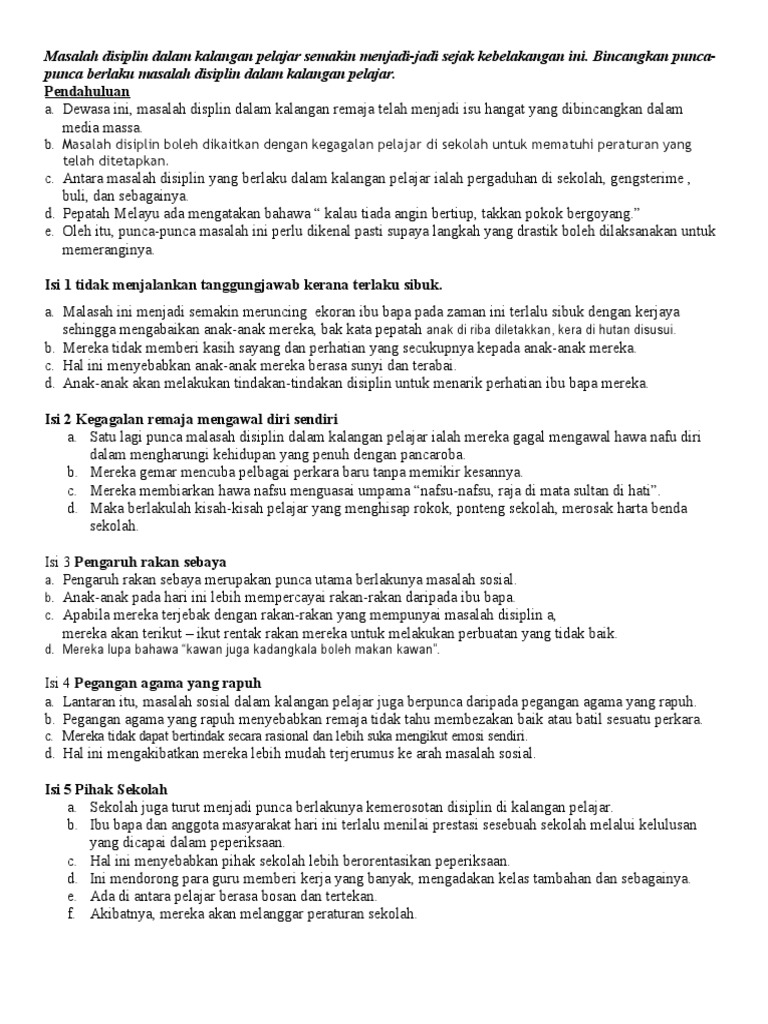 Langkah Mengatasi Masalah Disiplin Pelajar Karangan Spm