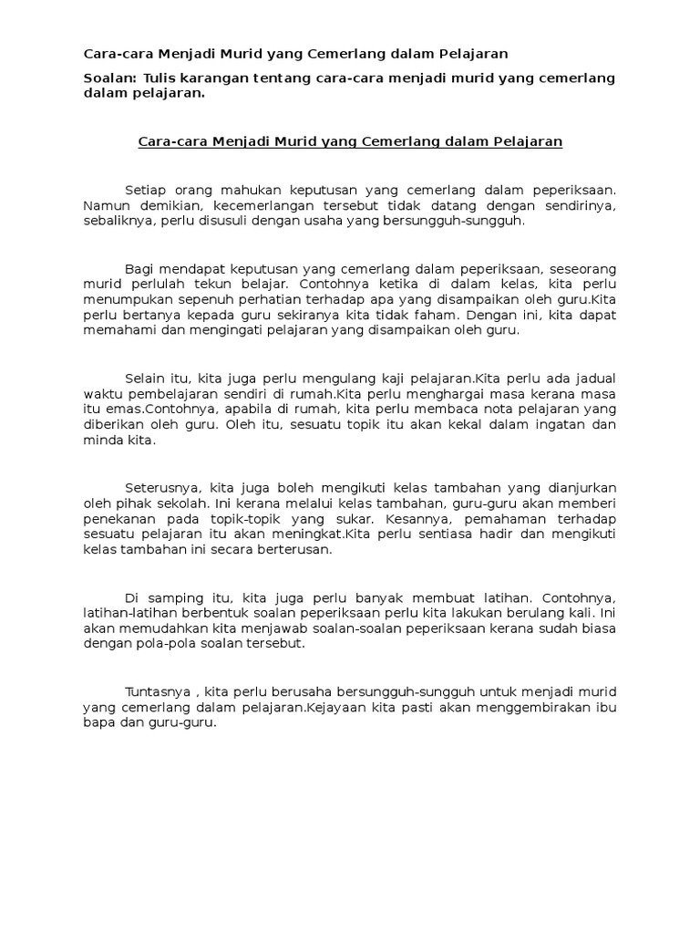 Contoh Karangan Cara Cara Menjadi Murid Cemerlang Karangan